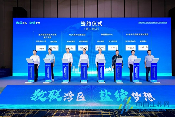 会议还进行项目集中签约活动,分3批次签约京东物流供应链(盐城)产业创新基地、中集(江苏)海洋新能源装备研发中心、鱼亮智能机器人研发生产、AIGC算力训推等12个产业项目,总投资近60 亿元。项目建成达效后,将进一步提升盐南高新区数字经济产业发展水平。