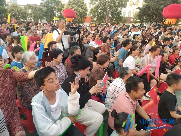 活动现场,节目丰富多样,令人目不暇接,吸引了众多居民群众的热情参与。演出在大合唱《欢聚一堂》中拉开序幕,大家唱得热情高涨,激情四射。淮剧《此科金榜得高中》、歌伴舞《祖国万岁》、女声独唱《唱支山歌给党听》等节目轮番上演,赢得在现场居民群众的阵阵掌声、欢呼声。