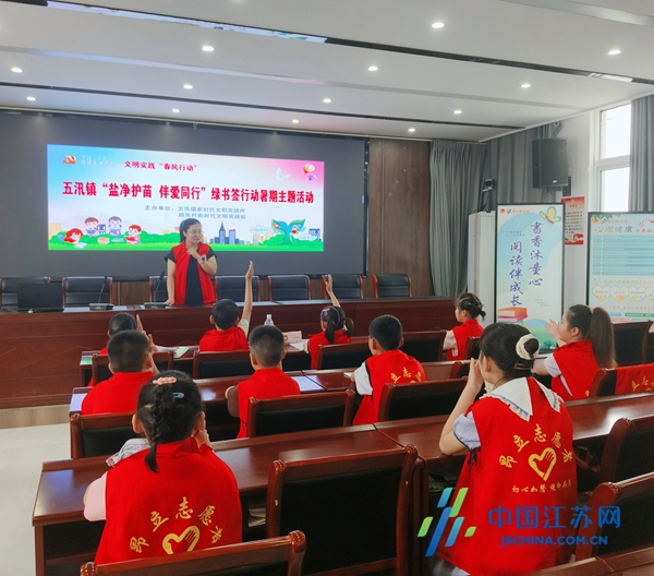 中国江苏网7月18日盐城讯 为进一步增强“绿书签行动”的传播力和影响力,引导青少年进行绿色阅读、文明上网,自觉抵制不良网络信息和不健康书籍,7月17日,盐城市滨海县五汛镇在四汛村新时代文明实践站开展了“盐净护苗 伴爱同行”绿书签行动暑期主题活动。