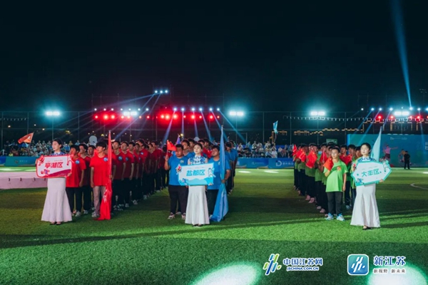 新华报业·新江苏讯 夜幕低垂,灯光璀璨。7月27日晚,盐南青年体育公园沉浸在一片欢腾之中。“Fighting一夏·当燃热爱”——2024盐城市第二届社区超级联赛盛大开幕。这一夜,体育的激情与社区的活力在此汇聚,青春、拼搏与梦想的乐章也在此奏响。