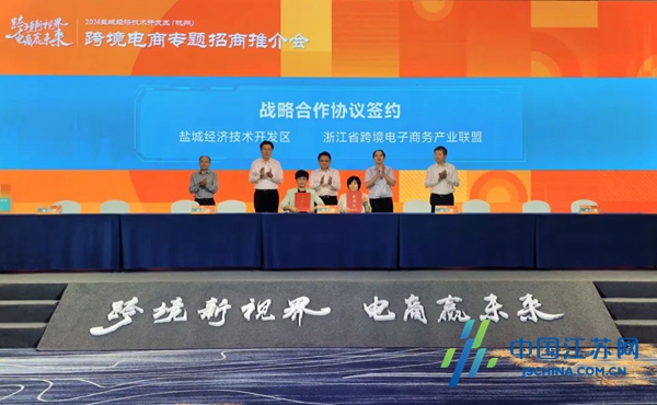 活动现场还举行了签约仪式,盐城经开区与浙江省跨境电子商务产业联盟签订战略合作协议,将以“优势互补、共同发展”为原则,在跨境电商领域开展更深层次合作。智麟汽车后市场跨境销售、韵达供应链、大鱼出海、新能源专用车进出口等10个项目集中签约。