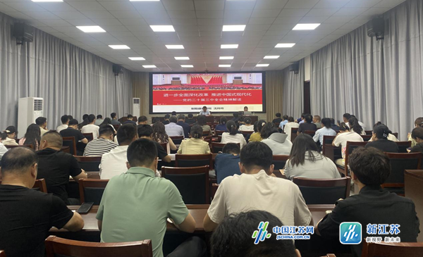 此次活动邀请射阳县委党校教研科科长沈玲玲作专题宣讲,她以《进一步全面深化改革 推进中国式现代化——党的二十届三中全会精神解读》为题,从新时代全面深化改革的伟大成就及进一步全面深化改革的重大意义、指导思想、基本原则、系统部署等五个方面,对全会的精神进行深入阐释。宣讲主题鲜明、内容丰富,思路清晰、深入浅出,既有理论高度,又有思想深度和实践力度,对全体学员深入学习贯彻党的二十届三中全会精神实质具有很好的辅导作用。