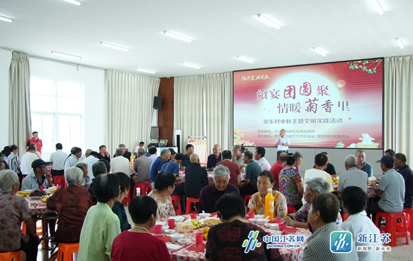 新华报业·新江苏讯 月满中秋,情满家园;丹桂飘香,喜迎中秋。9月17日,盐城市射阳县洋马镇新时代文明实践所在贺东村开展了“我们的节日·中秋|飨宴团圆聚 情暖菊香里”主题活动。