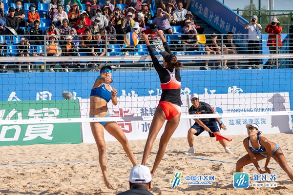 自比赛开幕以来,来自全国各地的优秀沙滩排球运动员齐聚盐城,展开为期四天的激烈角逐。赛场上,运动员们无惧大风袭扰,每一次精准的扣杀、每一次奋力的跃起拦网,都展现了他们顽强拼搏的体育精神和对胜利的渴望。观众席上,欢呼声与加油声此起彼伏,为这场沙滩排球盛宴增添了无限活力。