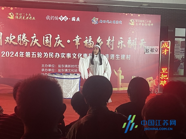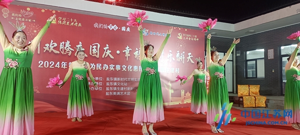 中国江苏网9月27日盐城讯 为庆祝新中国成立75周年,9月26日,盐城市亭湖区盐东镇“神州欢腾庆国庆 幸福乡村乐翻天”文艺演出在该镇生建村举行。