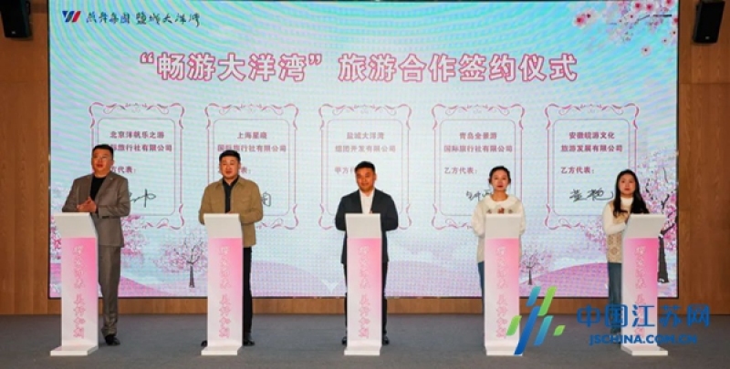 开幕式现场还举行了“畅游大洋湾”旅游合作签约仪式。大洋湾景区分别与省外、省内八家旅行社签署战略合作协议,助力整合旅游资源,提升景区的服务品质,为游客带来更优质的旅游体验,同时也将进一步推动盐城“全域旅游”的高质量发展。