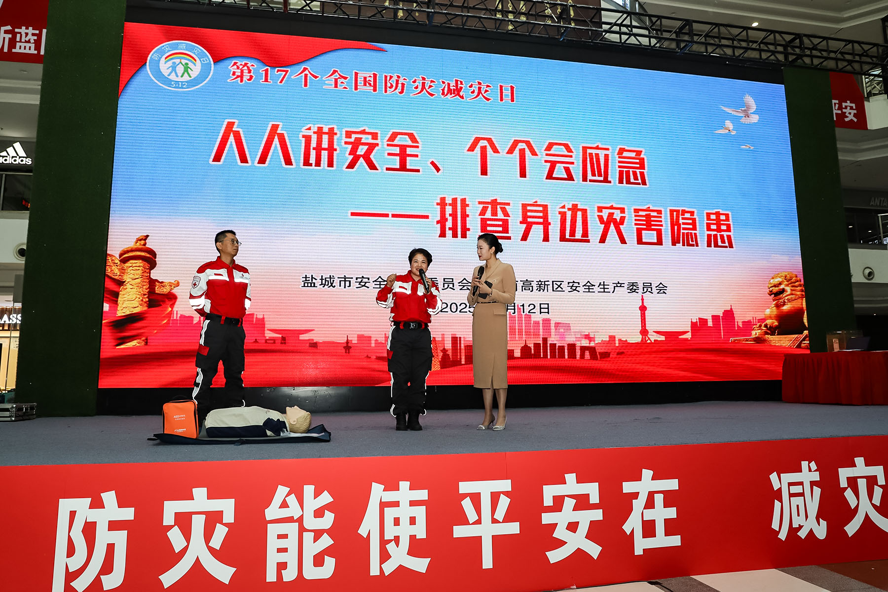 中国江苏网讯 今年5月12日是第17个全国防灾减灾日,5月12日至18日为防灾减灾宣传周。为增强市民防灾减灾意识,提升全社会抵御灾害风险能力,5月12日上午,市安委办、应急局牵头组织市发改委、市自然资源和规划局、市住建局、市水利局等18家部门单位以及盐南高新区安委会,在宝龙广场开展“5·12”全国防灾减灾日集中宣传活动。市应急局副局长王奇东、盐南高新区管委会副主任周俊等领导出席活动。