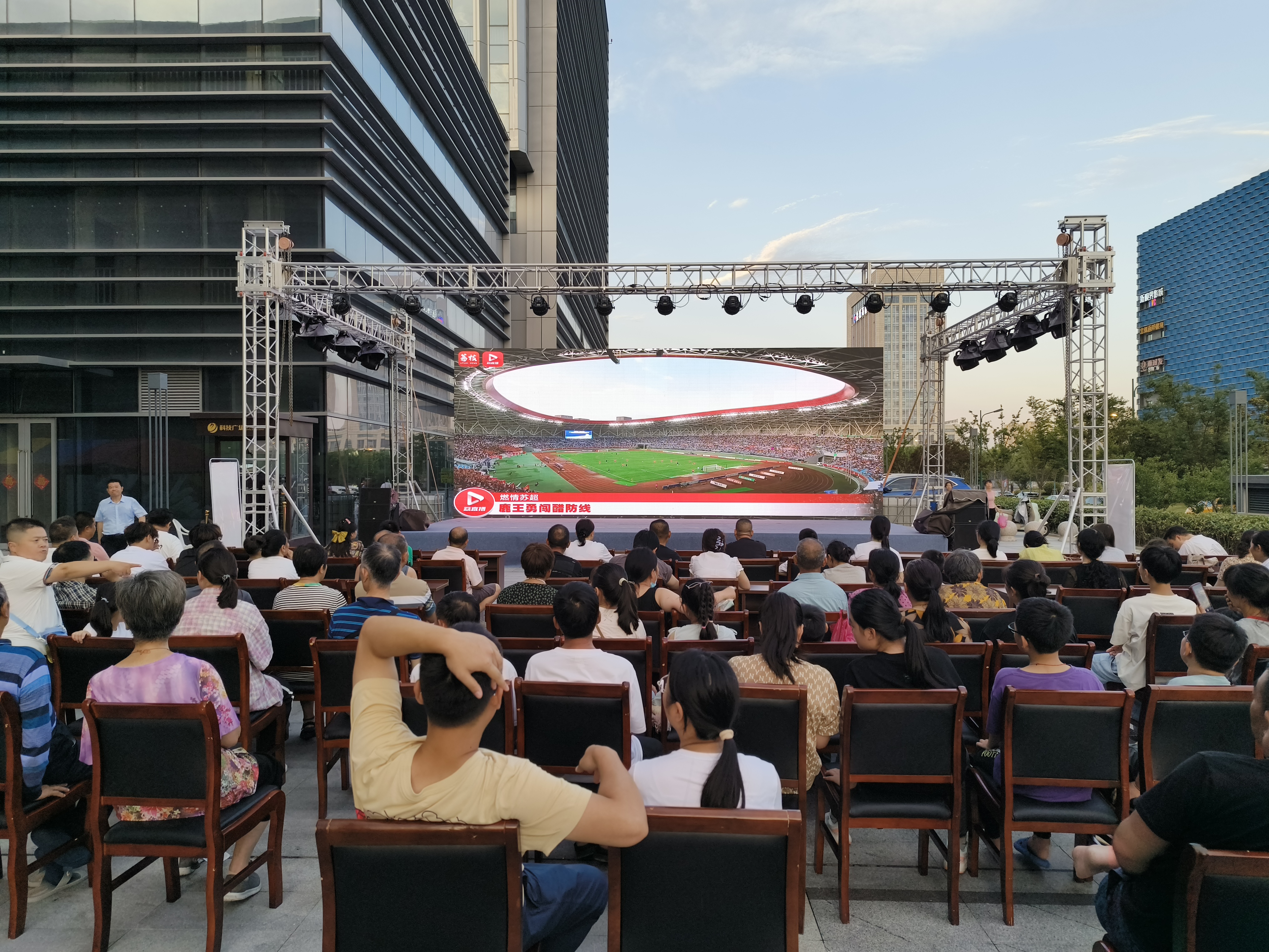盐都区新时代文明实践中心联合古月年华商业综合体,组织群众在广场观看苏超比赛,享受足球带来的视听盛宴。