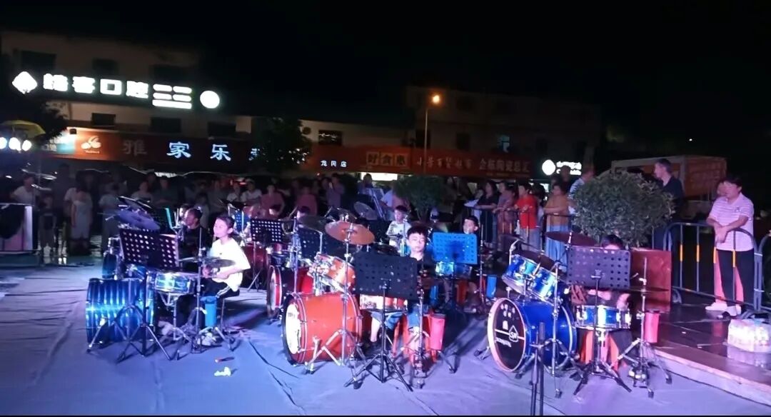 中国江苏网讯 8月6日晚,盐都区龙冈镇新时代文明实践中心热闹非凡,2025年鼓动他来琴行架子鼓、吉他暑期汇演在此精彩上演。这场汇演不仅为学员们提供了展示学习成果的舞台,还为当地居民带来了一场别开生面的视听盛宴,为炎炎夏日增添了一抹清凉的文艺气息,也推动了文明实践夜活动持续开展。