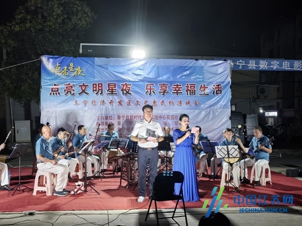 中国江苏网9月16日盐城讯 9月15日晚,江苏阜宁经济开发区顾庄小区灯光璀璨、掌声阵阵,江苏省优秀群文团队——阜宁县龙湖琴韵艺术团带来的“点亮文明星夜 乐享幸福生活”文艺惠民纳凉晚会热闹开演,为居民送上一场兼具红色情怀与生活温度的夏夜文化盛宴。