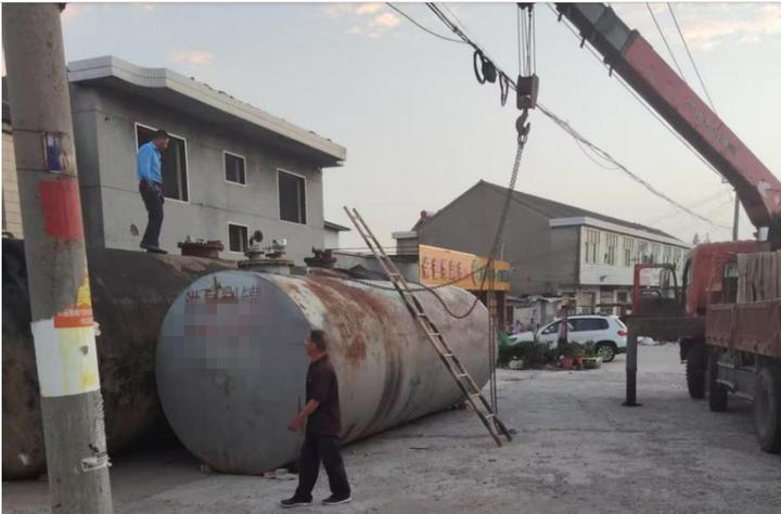中国江苏网讯 根据前期群众举报线索,8月19日上午,盐城市建湖县应急局与公安局执法人员带着吊车、防渗油布等设备,赶到水上一村附近的射阳河河湾——这里藏着一处非法销售柴油的黑窝点,如今正进行储油罐拆除作业。随着吊车吊臂缓缓升起,被固定在防渗油布上的圆柱形储油罐离开地面,稳稳落在转运卡车上,将被送往指定地点作无害化处理。目前,建湖县公安局已对案件展开深度调查,后续处理进度将持续跟踪。