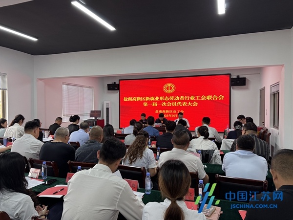中国江苏网9月29日盐城讯 9月28日下午,盐南高新区新就业形态劳动者行业工会联合会成立暨第一届第一次会员代表大会召开,标志着辖区内的保安保洁员、外卖快递员、家政服务员、物流货运司机等新业态劳动者从此有了专属的“娘家人”和“避风港”。盐南高新区总工会主席戴荣海出席会议并讲话。