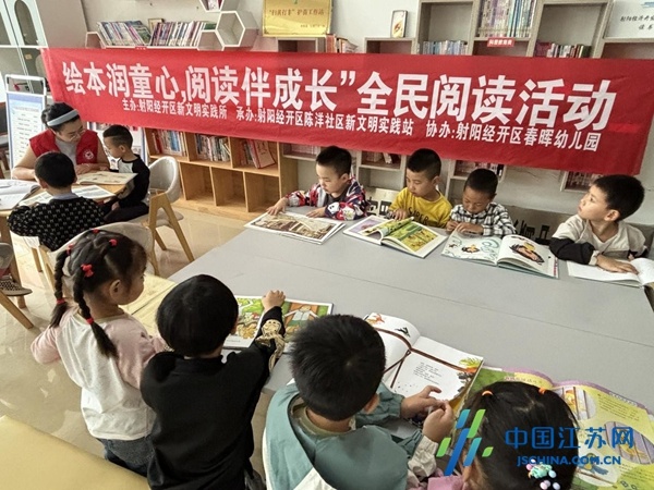 中国江苏网9月30日盐城讯 为培养幼儿良好阅读习惯,丰富社区文化生活,近日,江苏射阳经济开发区和射阳团县委联合辖区幼儿园共同开展“绘本润童心 阅读伴成长”全民阅读主题活动,近20名小朋友在绘本的世界里开启了一场奇妙的阅读之旅。