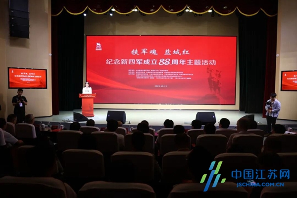 中国江苏网10月14日盐城讯 10月12日,“铁军魂 盐城红”纪念新四军成立88周年主题活动在新四军纪念馆举行。本次活动由中共盐城市委宣传部、盐城市文化广电和旅游局指导,新四军纪念馆、全国新四军纪念馆场馆联盟、盐城师范学院新四军研究院主办。旨在深切缅怀新四军革命先辈的丰功伟绩,大力弘扬伟大抗战精神,深入开展革命传统教育和爱国主义教育,为奋力推进中国式现代化盐城新实践凝聚强大精神力量。盐城市政协副主席、党组副书记、盐城市新四军研究会会长潘道津,南京师范大学副校长张连红,中国人民抗日战争纪念馆—北京师范大学国家革命文物协同中心主任张皓,江苏省新四军研究会执行会长崔广怀,中共盐城市委宣传部副部长夏斌等出席活动。