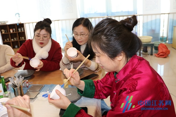 打破校园围墙,响水开放大学将非遗课堂搬到更广阔的公共空间:在响水县文化馆内举办的“香薰雅韵”活动中,居民在专业老师带领下完成干花粘贴、精油调配,让晶莹烛台兼具艺术价值与实用功能;在社区服务中心的陶艺活动现场,画笔、颜料与制作工具整齐排列,志愿者的示范讲解让陶艺技艺变得通俗易懂;在大型商场,还特意设置文化展示区,通过图文实物解读传统节日内涵,让非遗体验与文化认知深度融合。