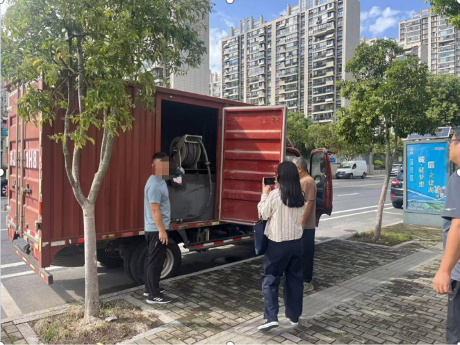 现场检查的隐患细节更让人揪心。拉开货车车厢门,一个锈迹斑斑的铁皮油罐占据了大半空间,罐口油污结块,焊接处还有细微裂缝;旁边的简易加油机是二手拼凑的,电源线直接插在车载逆变器上,绝缘皮已开裂,金属线芯就贴在油罐外壳上。“碧桂园东门早晚都是接送孩子、买菜的居民,商铺密集、人流大,这油罐夏天暴晒后油温能超 40℃,一根静电火花就可能引爆!”应急局执法人员指着油罐,当场向当事人指出风险,“你这不是卖油,是在居民区旁放‘移动炸弹’!”