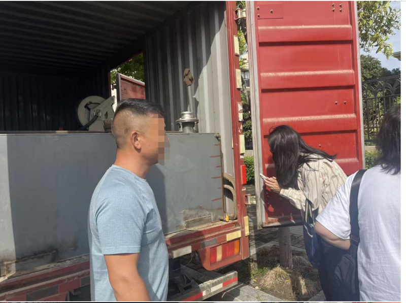 中国江苏网讯 经前期经摸排并接到群众举报,9月9日下午,建湖县应急局、公安局组成联合执法组,直奔碧桂园东门——目标是一辆涉嫌非法销售柴油的箱式货车。抵达现场时,这辆白色箱式货车正停靠在小区商铺旁的空地上,车厢门半掩着,一根黑色加油软管从缝隙中露出,旁边还停着一辆等待加油的小型货车。执法人员没有急于上前,而是先观察记录:货车车身无任何危险品运输标识,车厢外连基础灭火器都未配备,完全是“三无”黑加油点的典型模样。