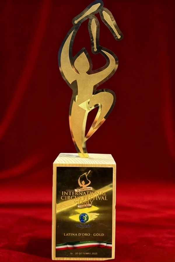 中国江苏网10月22日盐城讯 近日,在第26届意大利拉蒂纳国际马戏艺术节上,盐城市射阳县杂技团参赛节目《逐梦·双人技巧》凭借精湛技艺与深刻立意,从全球众多优秀作品中脱颖而出,荣获金奖。这不仅是对节目艺术水准的高度认可,更将射阳杂技推向了更广阔的国际舞台。