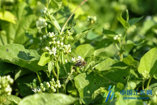 中国江苏网10月24日盐城讯 在位于盐城市滨海县八滩镇界山村的白首乌种植基地核心区,148个棕黄色蜂箱如整齐列队的“小营房”,箱体缝隙里传出的“嗡嗡”声此起彼伏,交织成充满生机的自然交响曲——一场非遗资源与生态养殖碰撞的“甜蜜实验”,正在生动上演。