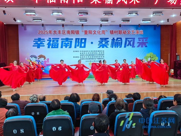 中国江苏网10月25日盐城讯 岁岁重阳暖,歌舞庆安康。10月24日下午,盐城市大丰区南阳镇文化礼堂内,乐声飞扬,热闹非凡,由该镇党委、政府主办,镇新时代文明实践所、文化广电服务中心、老龄委及老年协会联合承办的“幸福南阳·桑榆风采”2025年“敬老月”暨“重阳文化周”广场舞展演在此启幕。15支来自全镇各村(社区)及文艺团体的代表队登台亮相,用精彩演出为“敬老月”注入浓厚文化温情。