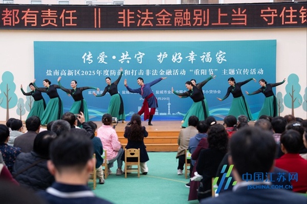中国江苏网10月30日盐城讯 金秋的阳光温柔地洒在紫薇幼儿园的操场上,三百多名长者与孩童共聚一堂,歌声、笑声、掌声此起彼伏。10月29日下午,一场别开生面的“传爱·共守 护好幸福家”重阳节防非宣传主题活动在这里温情上演。这场由盐南高新区防范和打击非法金融活动机制办公室牵头,联合盐城紫薇幼儿园共同打造的活动,不仅是一次节庆聚会,更是一次关于“守护”的生动诠释——用金融力量守护教育未来,用知识传递筑牢家庭幸福。