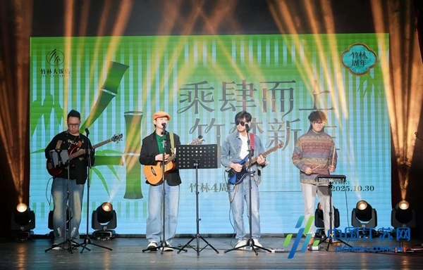活动在乐队悠扬的暖场音乐中拉开帷幕,歌曲《竹林》的婉转旋律与“竹元素”主题深度契合,迅速点燃氛围。现场大屏播放竹林大饭店宣传视频,画面中,旧时街巷的怀旧场景与如今多元经营的热闹景象交织呈现,清晰勾勒出竹林大饭店四年来从“城市记忆载体”到“文旅消费新地标”的蜕变轨迹,让在场观众沉浸式重温其成长历程。
