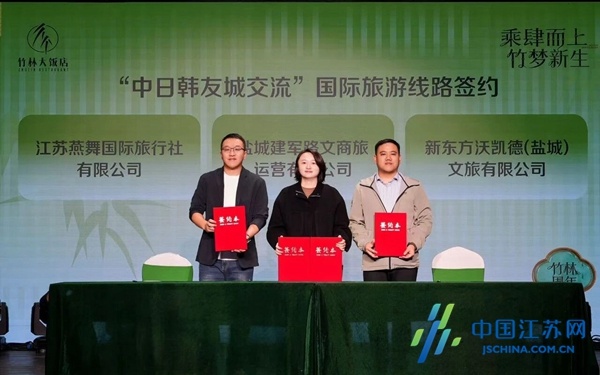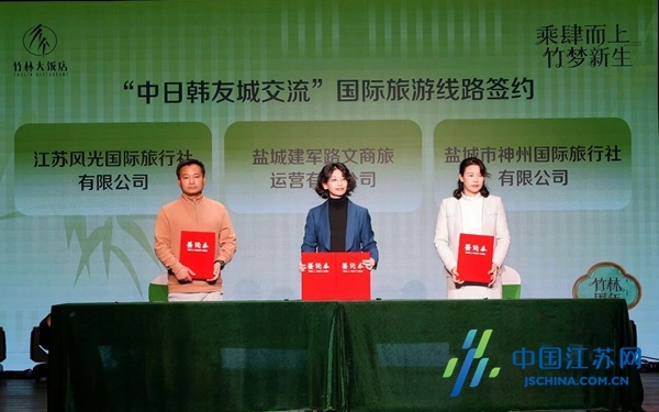 在全场期待的目光中,“中日韩友城交流”国际旅游线路签约仪式顺利完成。燕舞国旅、风光国旅、新东方文旅、神舟国旅四大文旅企业,与盐城建军路文商旅运营有限公司达成合作,将联合开发打造韩国首尔、日本东京、中国盐城的国际文旅线路。这一合作不仅旨在让更多国际游客感受盐城的生态之美与人文之韵,更将推动盐城与友城的民心相通,标志着盐城文旅“走出去”战略迈出坚实新步伐。