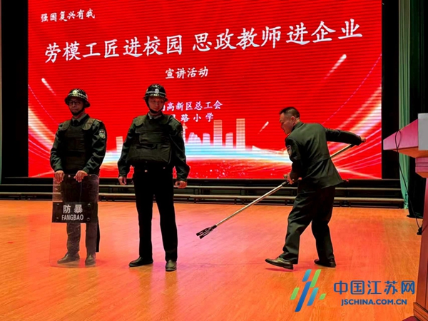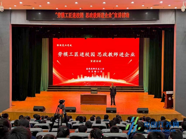 中国江苏网11月7日盐城讯 为大力弘扬劳模精神、劳动精神、工匠精神,充分发挥先进典型的示范引领作用,让“劳动最光荣、劳动最崇高、劳动最伟大、劳动最美丽”的理念深入人心,11月6日下午,江苏省盐南高新区总工会走进日月路小学,精心组织“劳模工匠进校园 思政教师进企业”宣讲活动,邀请市劳动模范蔡云生授课,120余名师生参加活动,沉浸式感受榜样力量、汲取成长养分。