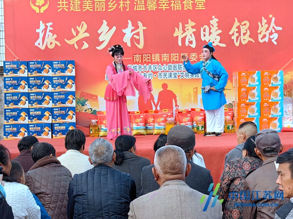 中国江苏网11月10日盐城讯 11月9日,盐城市大丰区南阳镇南阳社区新时代文明实践站内,音乐声、锣鼓声、笑声、掌声交织,热闹非凡。该村创业成功人士、盐城福顺水产品养殖专业合作社社长、大丰区众心助困联合会第二分会副会长刘卫东牵头组织的“情暖银龄”文艺慰问演出在此举行。