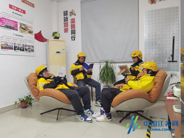 吃完午饭,不少外卖员来到隔壁的党群服务中心。宽敞的大厅里,职工读书角、饮水机、微波炉、冰箱、医药箱、充气泵、雨伞等设施一应俱全,还提供免费饮水、智能充电、应急药品、无线网络等温馨服务。盐都区委组织部工作人员介绍:“按‘八有’要求,盐都整合村(社区)党群服务中心、街道便民服务中心、商圈等阵地资源,打造基础型服务站点70个、枢纽型服务站点2个,人流量高的站点日均可服务50人次以上。”