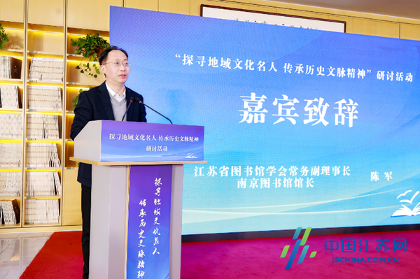 江苏省图书馆学会常务副理事长、南京图书馆馆长陈军在致辞中寄语苏皖两地图书馆人要深入研究当地人文历史,制定文旅未来的发展规划和走向,明确文旅项目的主题定位、功能布局,以促进地方文旅融合高质量发展。