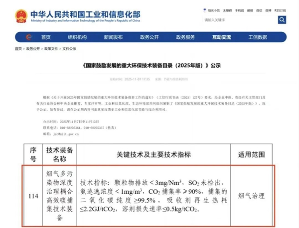 中国江苏网11月18日盐城讯 近日,工业和信息化部公示《国家鼓励发展的重大环保技术装备目录(2025 年版)》,“中国烟气治理之都”盐城环保科技城培育的江苏中创清源科技有限公司核心成果“烟气多污染物深度治理耦合高效碳捕集技术装备”成功入选。这一国家级认定,不仅印证了该装备在减污降碳协同领域的全球领先地位,更揭示出这座“国家级绿色工业园区”以“二次创业”战略驱动产业升级、孵化顶尖技术的豪情壮志。