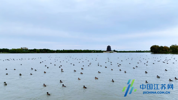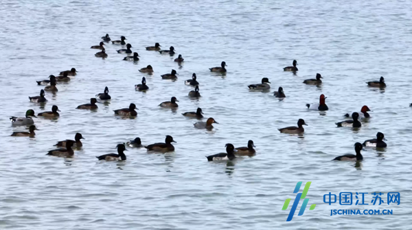 中国江苏网11月19日盐城讯 随着盐城大纵湖国家湿地公园基础设施的持续升级与生态环境的稳步改善,清冽优质的水源、葱郁秀美的景致,为越冬候鸟打造了理想的栖息乐园。立冬以来,大批候鸟陆续“做客”湿地,让静谧的湖区焕发出蓬勃生机与灵动韵味。