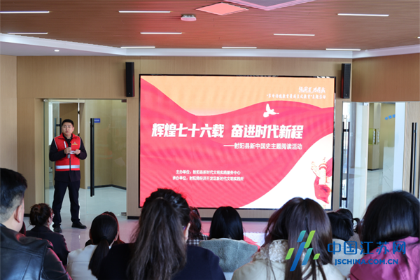 中国江苏网11月26日盐城讯 76载风雨兼程,铸就辉煌伟业;76载砥砺奋进,谱写时代华章。为深情回望新中国波澜壮阔的发展历程,感悟中国共产党带领人民取得的不朽成就,进一步激发广大干部职工与群众的爱国热情和使命担当,11月25日上午,盐城市射阳县新时代文明实践服务中心联合江苏射阳港经济开发区新时代文明实践所举办“辉煌七十六载,奋进时代新程”射阳县新中国史主题阅读活动。大家齐聚一堂,在书香中回望峥嵘岁月,在交流中凝聚奋进力量。