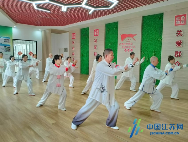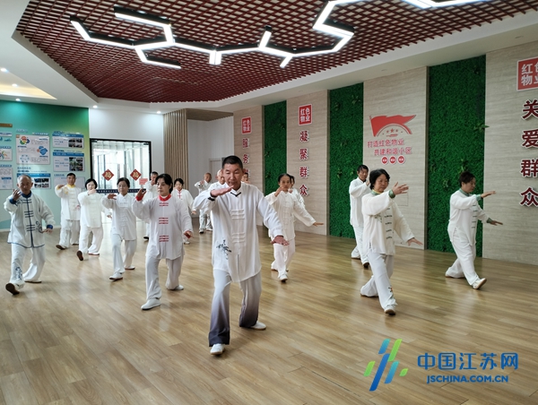 中国江苏网11月27日盐城讯 11月27日早晨7时,盐南高新区新河街道聚亭社区三楼聚亨太极健身站内,一场传统与活力交织的太极晨练拉开帷幕。20余名太极拳爱好者齐聚一堂,统一穿着武协标识服装,在优美的音乐声中练习24式太极拳,个个面色红润,动作行云流水。