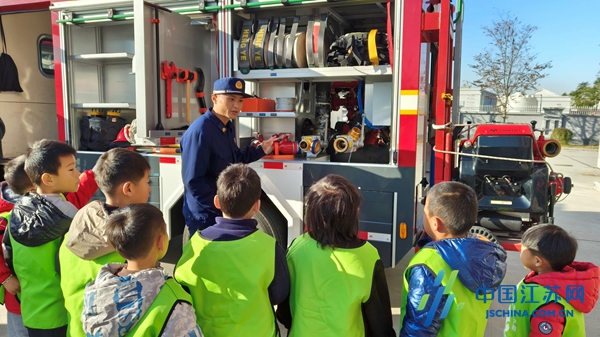 中国江苏网11月28日盐城讯 为切实增强幼儿消防安全意识,近距离感受消防员日常工作与生活。11月26日上午,盐城市射阳县新坍镇综合行政执法和应急管理办公室联合新坍镇实验幼儿园,组织小朋友及家长走进新坍镇专职消防救援队,开展“大手拉小手,打卡火焰蓝”沉浸式活动。