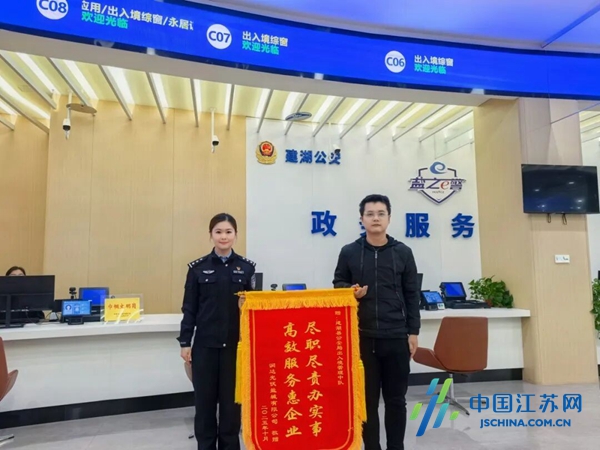 “绿色通道”让涉企政务服务更高效。10月21日,润达光伏盐城有限公司行政代表将一面写有“尽职尽责办实事高效服务惠企业”的锦旗送至建湖县公安局出入境接待大厅,对窗口的高效服务表示感谢。此前,该企业一名技术骨干因护照过期,无法及时办理赴新加坡商务签证。建湖县公安局出入境管理中队获悉后,立即启动助企绿色通道,快速完成受理、审核,并积极协调上级部门加快审批制证流程,迅速办妥手续,解决了企业的燃眉之急。这仅是盐城公安促进公安服务“流程最优、材料最简、成本最小”的一个缩影。