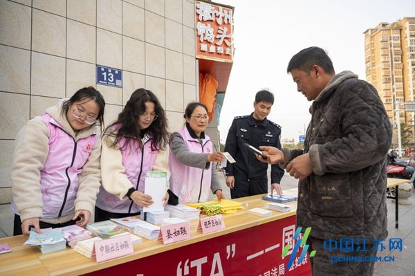 中国江苏网12月4日盐城讯 为切实增强群众的法律意识,筑牢家庭的平安防线,连日来,江苏射阳经济开发区邀请县妇联、公安局、检察院、法院等多部门在中联社区海都路菜场“摆摊设点”。活动通过发放宣传单、展板讲解、法律咨询以及赠送反家暴主题文创产品等形式,向过往群众普及反家暴法律知识,吸引了数百名居民驻足参与。