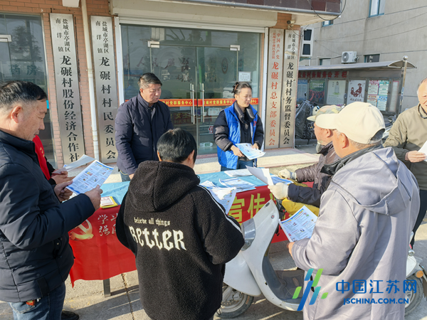 中国江苏网12月10日盐城讯 12月10日,盐城市亭湖区南洋镇新时代文明实践所、龙碾村新时代文明实践站组织村居干部、网格员及志愿者,开展了“全民反诈·守护平安”集中宣传活动,以精准宣讲筑牢年末群众财产安全屏障。
