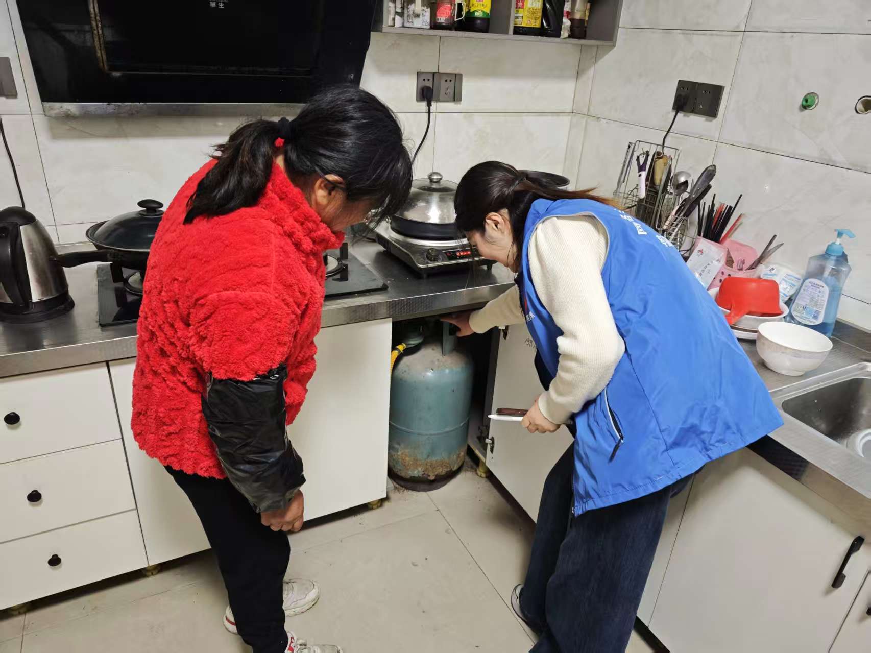 “阿姨,冬天取暖千万注意通风,做饭不要离人,用完煤气一定关好阀门!”在老年居民家中,社区工作人员一边发放《冬季防火安全宣传册》,一边耐心叮嘱日常安全常识。针对老年人、独居户等重点群体,工作人员更细致讲解了煤气泄漏应对、电气线路自查等实用知识。随后,检查人员使用专业工具,对居民家中的煤气管道、阀门、燃气灶等逐一进行排查,重点查看是否存在老化、漏气等隐患。
