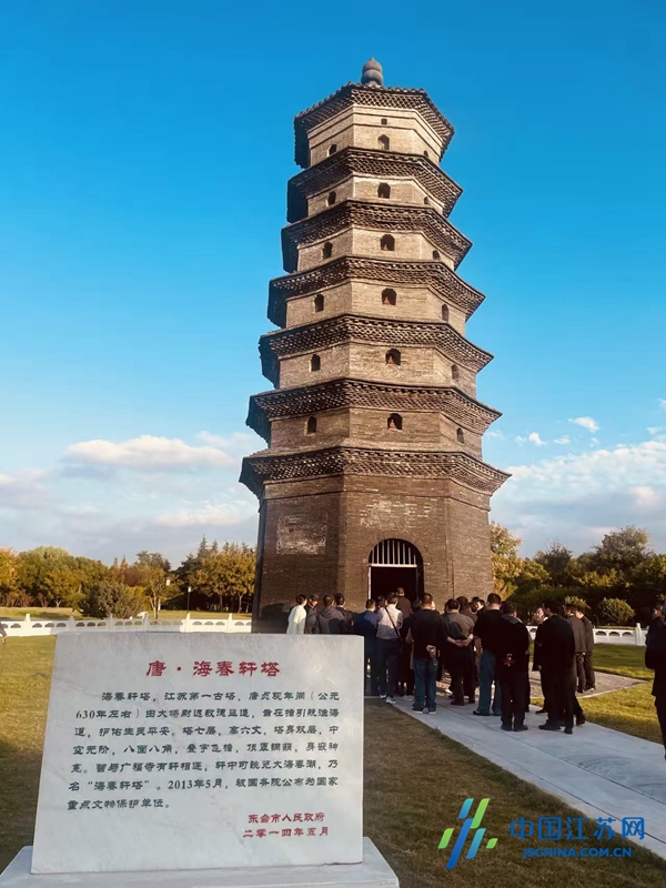 向西至西溪,晏溪河畔的海春轩塔静立千年。这座唐贞观年间由尉迟敬德监造的砖塔,与西安大雁塔、小雁塔同代且早于苏州虎丘塔,七级八角的形制古朴收敛,无繁复雕饰却藏双层塔身。它如一枚被岁月摩挲温润的旧印章,钤于水畔,印泥是千年烟雨,印文是漫漶沧桑。浅基却稳立千年,曾为渔舟引航,见证盐场兴衰、渔火明灭,也默数着滩涂向海延伸的寸寸年轮。砖壁上旧时的祈福刻痕,如今虽已尘封,却成了岁月最温情的注脚。如今,它以凝固的时光,与田野的新绿、滩涂的嫣红、林海的飞羽对话,彰显着历经动荡后的恒久沉静。