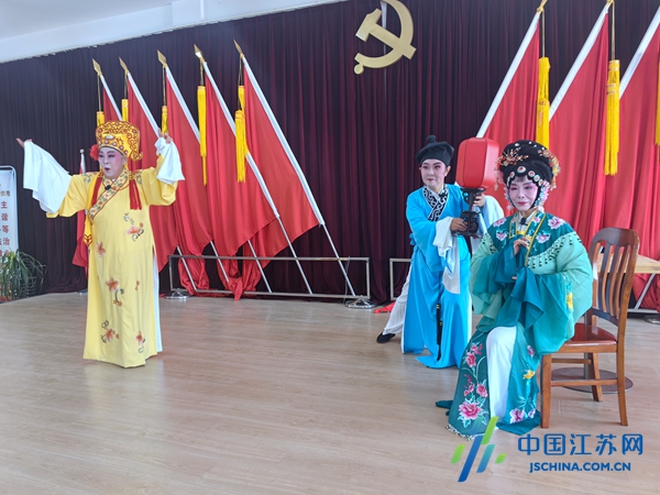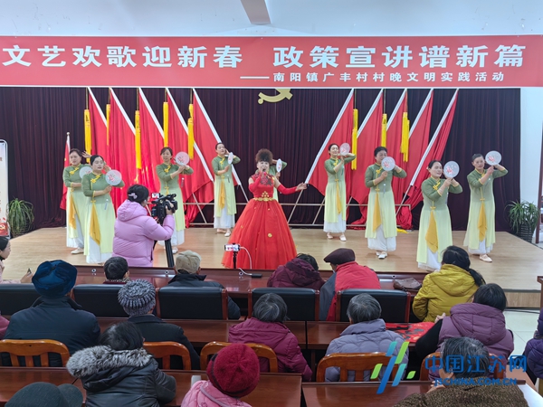 中国江苏网1月16日盐城讯 1月15日,盐城市大丰区南阳镇广丰村新时代文明实践站内座无虚席,锣鼓喧天,热闹非凡。近200名党员群众欢聚一堂,以“村晚”为媒架桥梁,以文艺传情暖民心,以政策宣讲汇民意,欢欢喜喜迎新春。