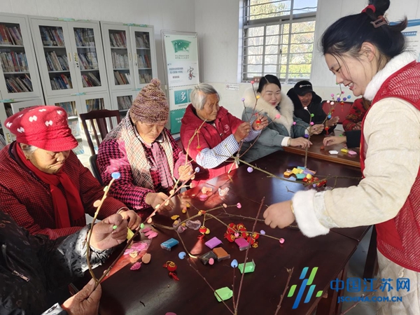 中国江苏网1月19日盐城讯 冬日寒风渐起,年味却悄悄漫进了街巷院落。为了让村里的银龄长辈们添一份暖、多一份乐,扎实践行“老有所学、老有所乐”的志愿服务理念,欢喜迎接新年到来,近日,盐城市射阳县新坍镇四烈村携手新安村、靠渔湾居委会,开展了一场“枯木焕彩暖寒冬 银龄巧手绘文明”主题活动。以彩色橡皮泥为“颜料”,以田间枯木为“画布”,让萧瑟枯枝蜕变为“繁花”摆件,在指尖创意中点亮晚年时光,喜迎新春。