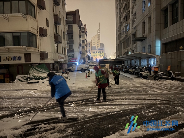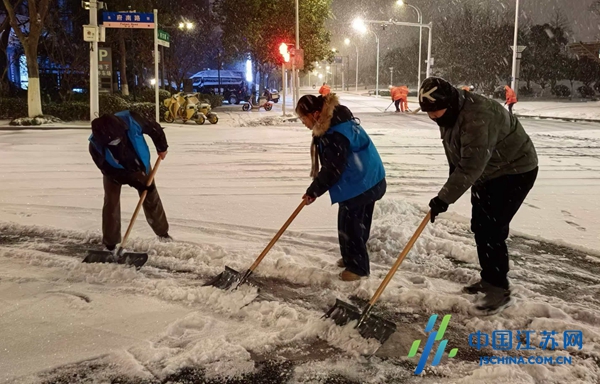 中国江苏网1月20日盐城讯 清晨,天还未亮,盐南高新区新都街道各社区的网格员已穿上马甲,拿上除雪工具,开始了网格内的巡查与清扫工作。“雪情就是命令,特别是我们网格里老年人多,还有几处坡度大的地方,不早点清理干净,会影响大家出行。”跃南社区网格员徐青霞一边奋力铲除单元门口的积雪,一边说道。和她一样,新都街道两百余名网格员第一时间响应,按照应急预案,以网格为单位,联合物业、发动志愿者、协调沿街商户,组成了一支支高效的除雪队伍,迅速投入到扫雪除冰的战斗中。