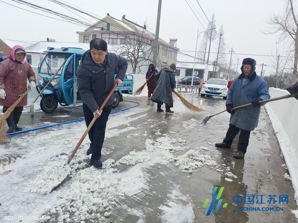 中国江苏网1月21日盐城讯 盐城市气象台2026年01月20日08时25分升级发布道路结冰橙色预警信号。一夜风雪过后,东台市许河镇全域银装素裹,道路积雪结冰给群众出行带来严重安全隐患。雪情就是号令,全镇上下闻令而动、协同作战,全力保障群众出行安全与生产生活秩序。