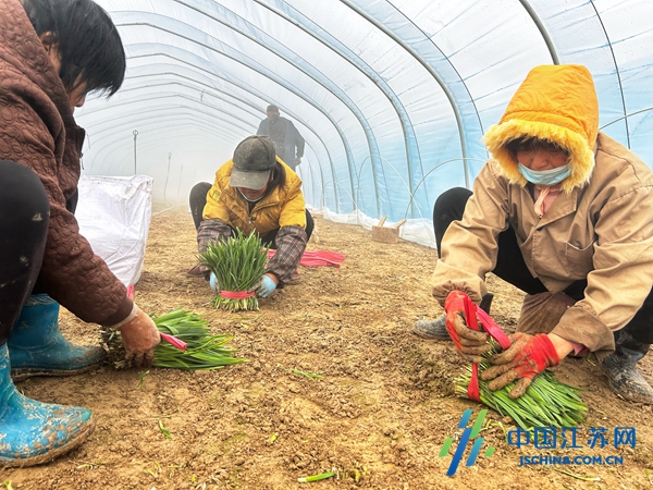 中国江苏网1月21日盐城讯 1月19日,户外寒风凛冽、寒意袭人,而盐城市大丰区南阳镇城乡村韭菜大棚内却暖意融融、生机盎然,翠绿的韭菜水灵鲜嫩,村民们躬身挥刀、麻利采收,构成了一幅棚内暖融融、韭香满畦垄、冬日丰收忙的喜人图景。
