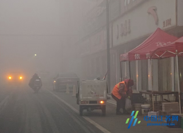 中国江苏网1月22日盐城讯 天刚蒙蒙亮,浓重雾霾便笼罩了东台市许河镇,能见度显著下降,给集镇环境管护工作带来不小考验,但该镇一线管护队伍守护环境洁净的责任心从未动摇,集镇环境清理整治工作如期启动、稳步推进。