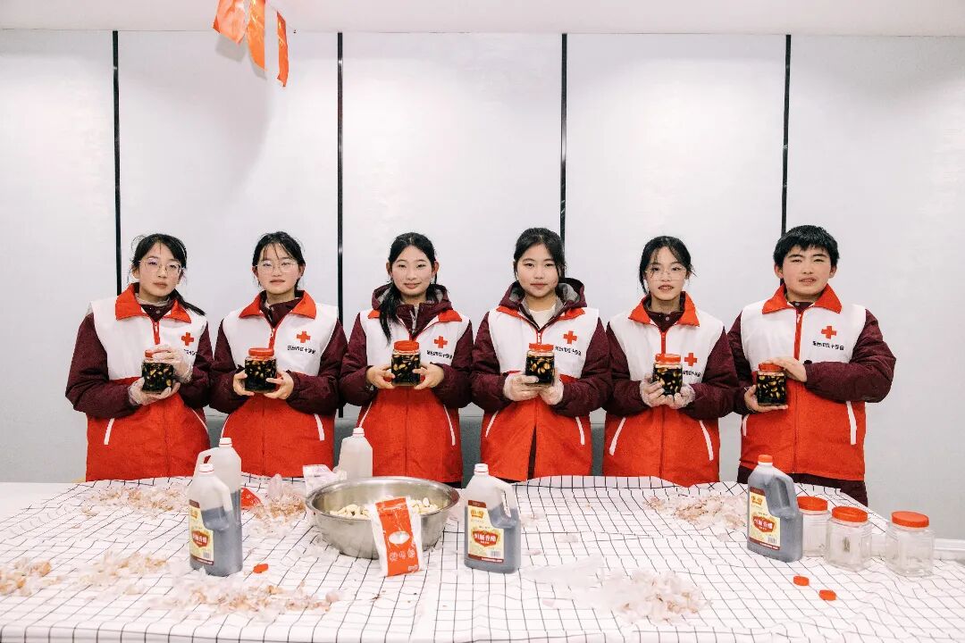 活动开启,暖意率先从厨房弥漫开来。孩子们主动用零花钱购置腊八粥食材,分组投入到传统美食的制作当中。烹饪组在厨房内配合默契,依次展开淘洗、浸泡、熬煮等工序。慢火炖煮之际,红豆、薏米、红枣等食材的香气渐渐交融,那氤氲的热气中满是少年们的诚挚心意。腌制组则精心处理蒜瓣、调配醋汁,制作腊八蒜,把一颗颗饱满的蒜瓣小心翼翼地分装到容器里。孩子们的每一个动作都蕴含着对爷爷奶奶们的诚挚祝福。