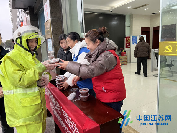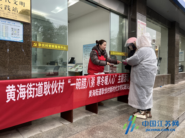 中国江苏网1月27日盐城讯 腊月初八至,年味渐浓时。1月26日农历腊八节当天,盐南高新区黄海街道耿伙村与东闸村同步开展腊八节送温暖活动,以一碗碗热气腾腾的腊八粥为纽带,将传统节日的温情与社区的关怀,精准传递至新业态就业群体及辖区居民心中,让寒冬因这份暖意格外动人。