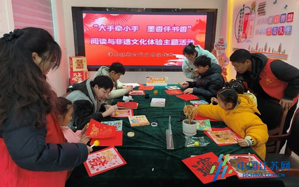 中国江苏网2月12日盐城讯 返乡学子传文脉,童真稚语润书香。近日,盐城市射阳县洋马镇新时代文明实践所精心组织开展了“大手牵小手,墨香伴书香”全民阅读暨非遗拓福体验活动。返乡大学生志愿者与镇区儿童齐聚一堂,共度一段美好时光。